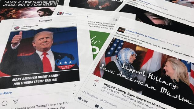 2017年11月,美国国会情报委员会披露的俄国在脸书上的政治广告,意图误导美国民意。(AP Photo/Jon Elswick)