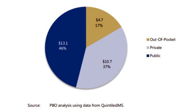 2017年,加拿大议会的预算官员估计,如果不包括政府为个人承担的额外保险,那省级政府负担的处方药开支每年约为42亿元。