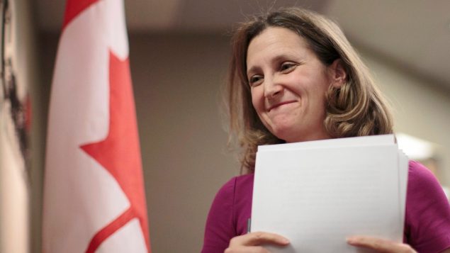 加拿大外长弗里兰德(Chrystia Freeland)说,加拿大得以暂时免交美国钢铝材高额关税是各党组成的整个团队不懈努力的结果。她同时重申NAFTA谈判和钢铝材关税是完全分开的两件事。(Chris Young/CP)