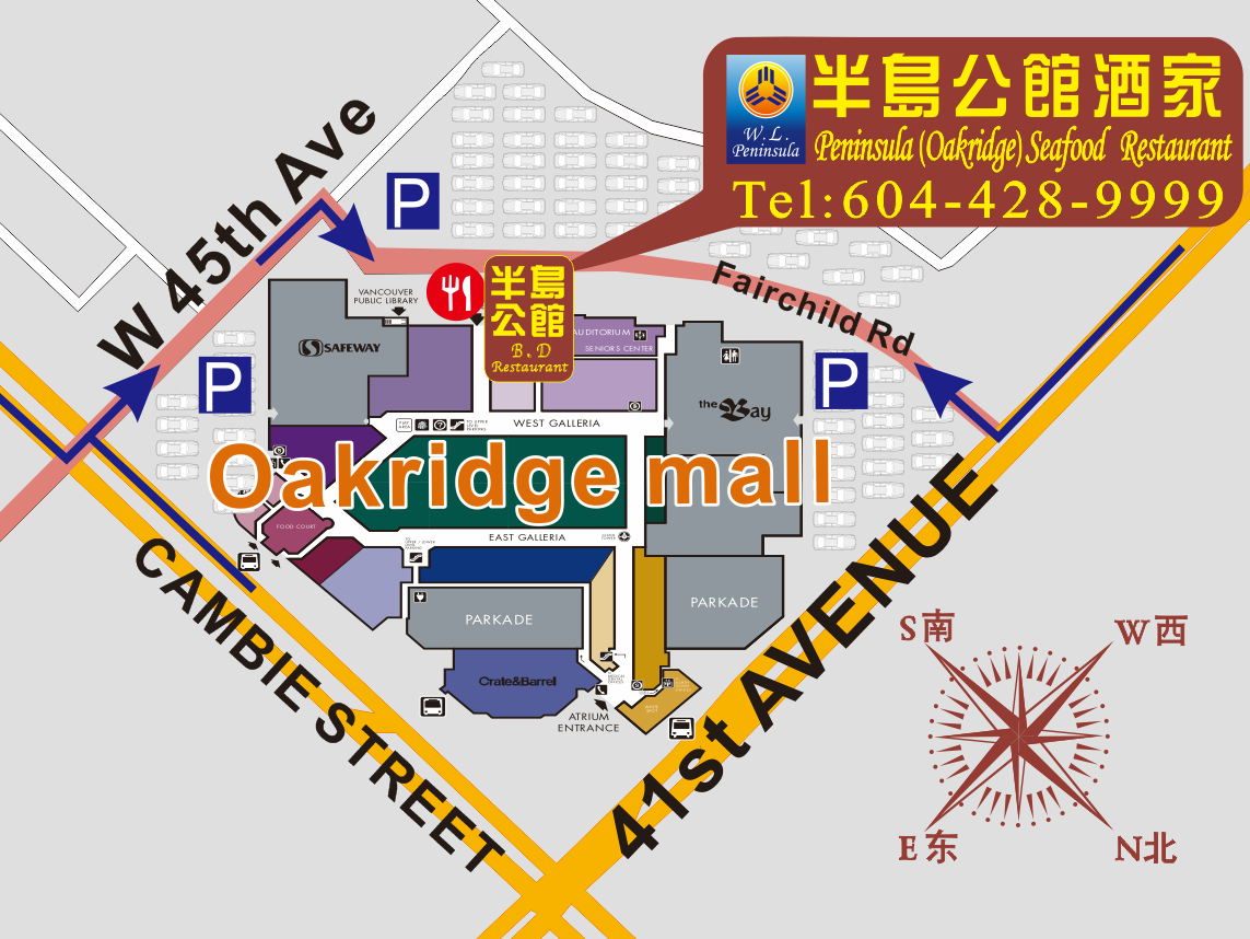 温哥华半岛公馆酒家 电话:604-428-9999 地址:#140-650 W 41st Ave, Vancouver, BC