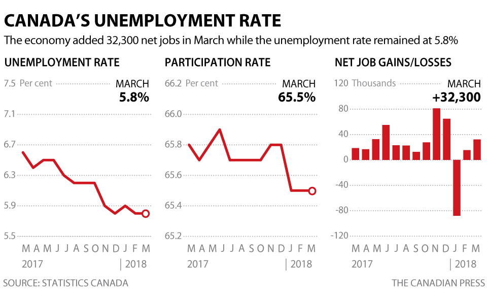 加拿大 3 月失业率不变,还是 5.8%