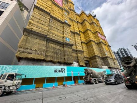 随后记者来到亲海駅II项目所在地,目前该楼还在建设中,旁边是观塘鱼类批发市场和水泥厂。值得一提的是,该项目的确临海,但附近的中介告诉记者,实际上只有高层才能观赏海景,低楼层基本没有风景可言。