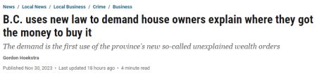 开始了!加拿大开始严查购买房产的资金来源了!首个“不明资产令”,或称“不明资产解释令”在BC省实施:要求一对夫妻解释一套他们无法靠合法收入购买的房产 的资金来源!