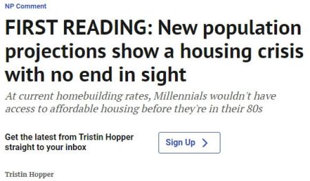 《国家邮报》评论员Tristin Hopper指出,根据加拿大统计局发布的最新人口预测,在大量新移民涌入的情况下,即使是最乐观的住房建设目标,也难以恢复住房的可负担性。年轻人可能要等到80岁才能负担得起住房。