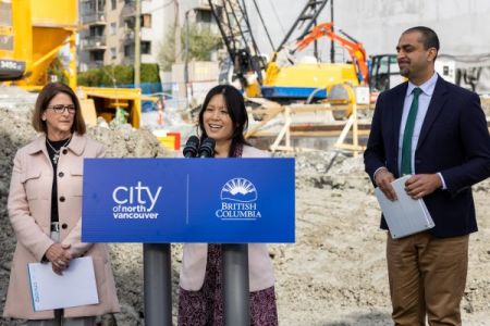 加拿大BC省政府在北温哥华一栋拥有179个单位的出租大楼周五(4月4日)破土动工,庆祝其住房计划满一周年。据称该大楼从概念到施工只需要用14个月的时间。省府表示,《BC建造》 (BC Builds) 计划推出一年后,北温及全省各地建造了更多可负担房屋,兴建时间亦有所缩减,让家庭、长者及个人更快受惠。