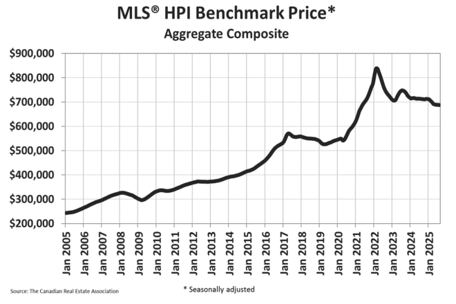 全国房价指数(剔除最昂贵的交易)从7月到8月下跌0.1%,降至687,300加元。多伦多、温哥华及周边郊区的房价下降,而草原省份和大西洋加拿大的房价环比上涨。