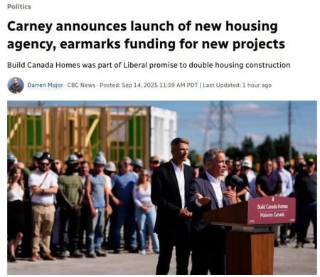 卡尼政府启动“建造加拿大住房计划”:首期投资130亿,目标加速平价住房建设!加拿大总理马克·卡尼(Mark Carney)周日(9月14日)在渥太华宣布,联邦政府正式成立新的住房机构 “Build Canada Homes”(建造加拿大住房),并投入 首期130亿加元,以加速全国范围内的平价住房建设。