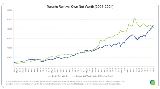 在加拿大,很少有投资能像房地产一样广泛创造财富,但它是否总能带来最佳回报?财富管理公司PWL Capital的一项新研究比较了房主的房产净值与租客将差额储蓄投资后的财富增长。结果令人惊讶:在大多数主要市场,包括多伦多,租客表现优于房主。虽然过去的收益不能保证未来结果,但数据提供了可帮助规划财务未来的见解。