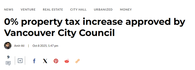 温哥华市议会刚刚通过一项决定,2026年地税将维持不变,实现“零增长”。