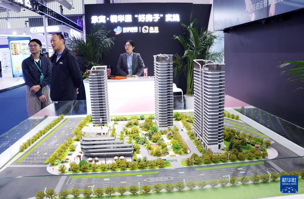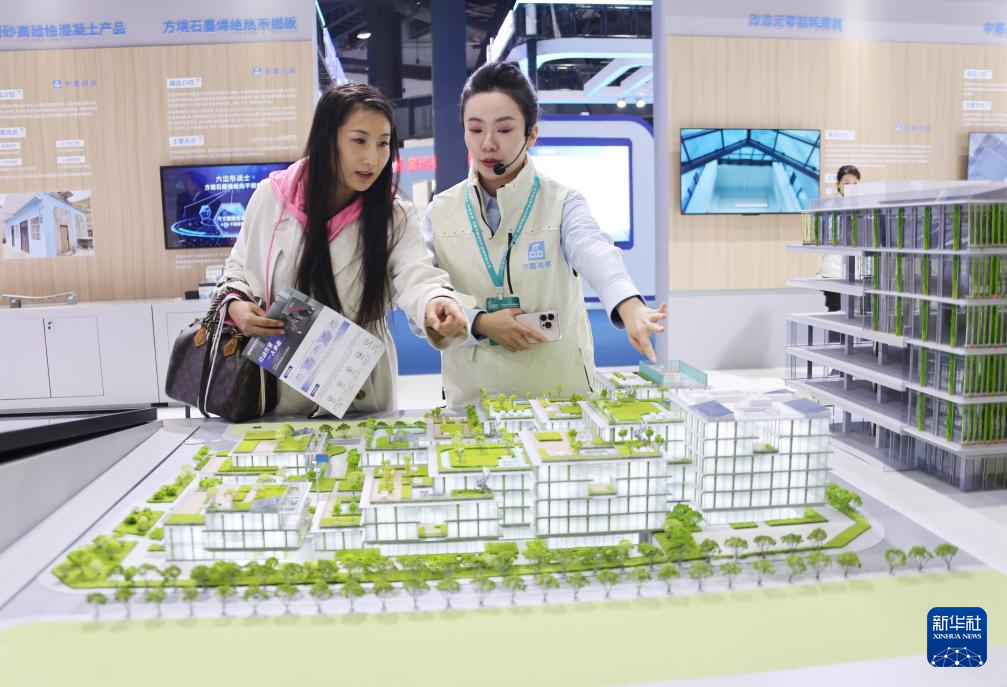 11月6日,参观者在住博会上了解绿色低碳好房子的展出内容。新华社记者 潘旭 摄