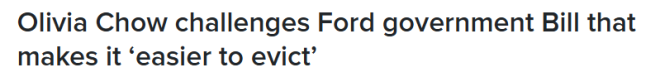 今天(11月12日周三),多伦多市长邹至蕙(Olivia Chow)提出动议,呼吁市议会反对该法案。她说,这项立法如果通过,将对全市大约一半靠租房居住的市民造成不利影响。