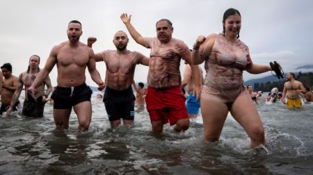 他说:「看到这么多人齐聚一堂,以令人兴奋的挑战开始新的一年,真是令人惊奇。」北极熊冬泳于中午展开,室外温度徘徊在摄氏7度左右,这与BC省乔治太子市等地的气温相差甚远,当地也举办北极熊冬泳,但气温约为零下13度。(据都市网、图:加通社)