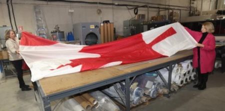杰富瑞说,公司曾制作过最大的旗帜是为 CFL 球队 – 汉密尔顿虎猫队 (Hamilton Tiger-Cats) 制作的。“这是一个足球场大小的场地,所以大约有 300 英尺乘 150 英尺。实际上,它仍然通过各种方式在加拿大巡回演出。”该公司的客户很多元化,他们最近为 Invictus Games 和太阳马戏团制作了旗帜和横幅,有时候公司也会接到一些外国政府驻加拿大的订单,因为会有该国的贵宾来访需要用到该国国旗。