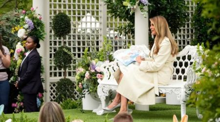 加美关系紧张之际,美国总统特朗普夫人梅拉尼娅(Melania Trump)却公开穿了加拿大品牌的外套,不知道是否意在言外。周一在白宫举行的年度复活节滚彩蛋活动中,美国第一夫人身穿蒙特利尔奢侈外套品牌 Mackage 生产的奶油色外套亮相。