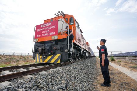 6月10日,我国第11万列中欧班列从中国-上海合作组织地方经贸合作示范区多式联运中心发出,满载1万余台山东本地制造的智能家电,货值超2000万元人民币,经内蒙古二连浩特口岸出境,驶向俄罗斯首都莫斯科。