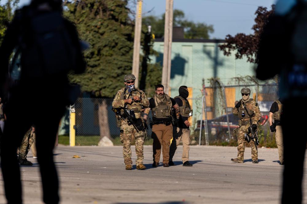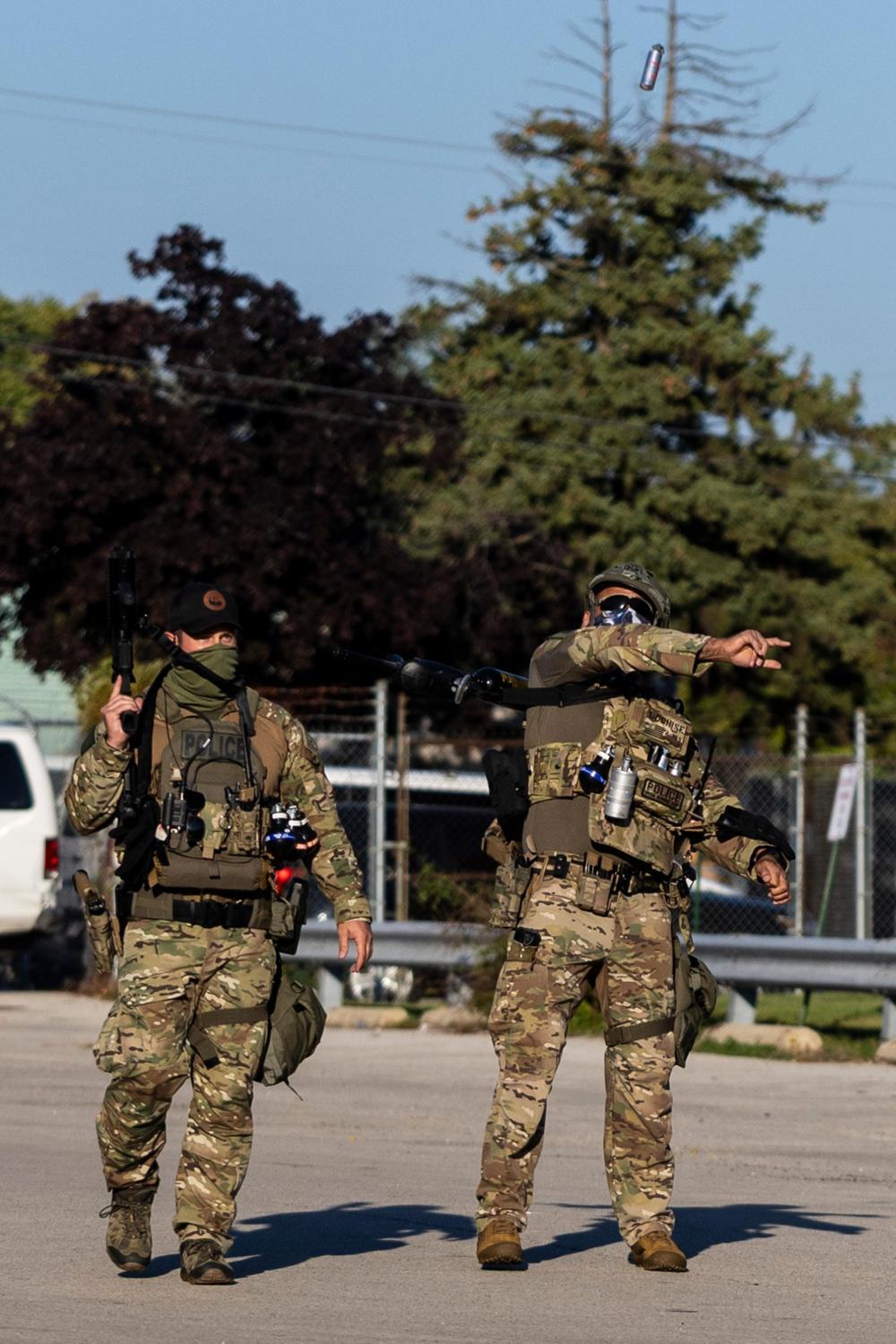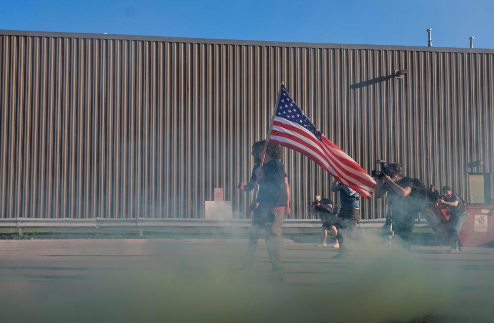 9月26日,在位于美国芝加哥西郊布罗德维尤市的移民与海关执法局办事机构外,上演着抗议者与执法人员的对峙和冲突。