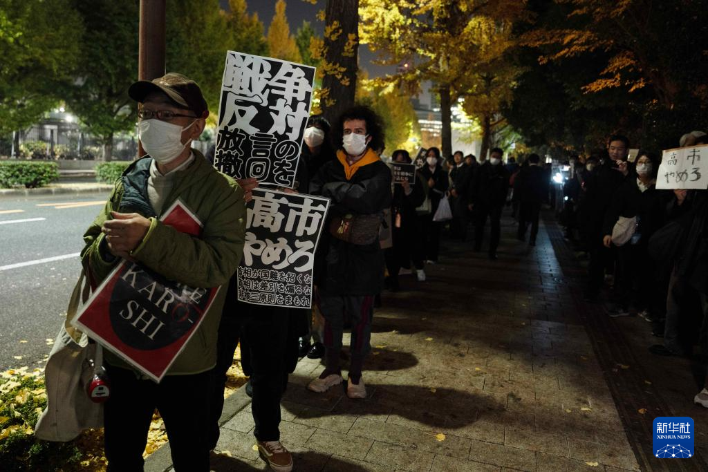 新华社东京11月21日电(记者李子越 杨智翔)数百名日本民众21日晚在位于东京的首相官邸前举行集会,抗议日本首相高市早苗近日在国会发表的涉台错误言论,要求其撤回相关表态并作出解释和道歉。