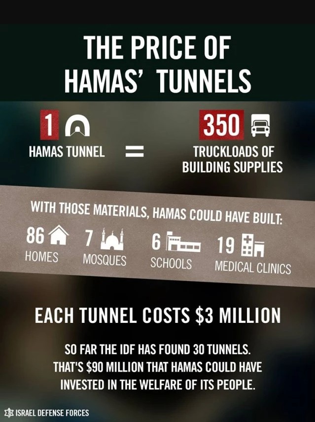 美国《国家地理》杂志报道说,哈马斯雇用巴勒斯坦的年轻人建造隧道,并把国际组织供给加萨民众的援助金拦截下,投资于隧道建设。