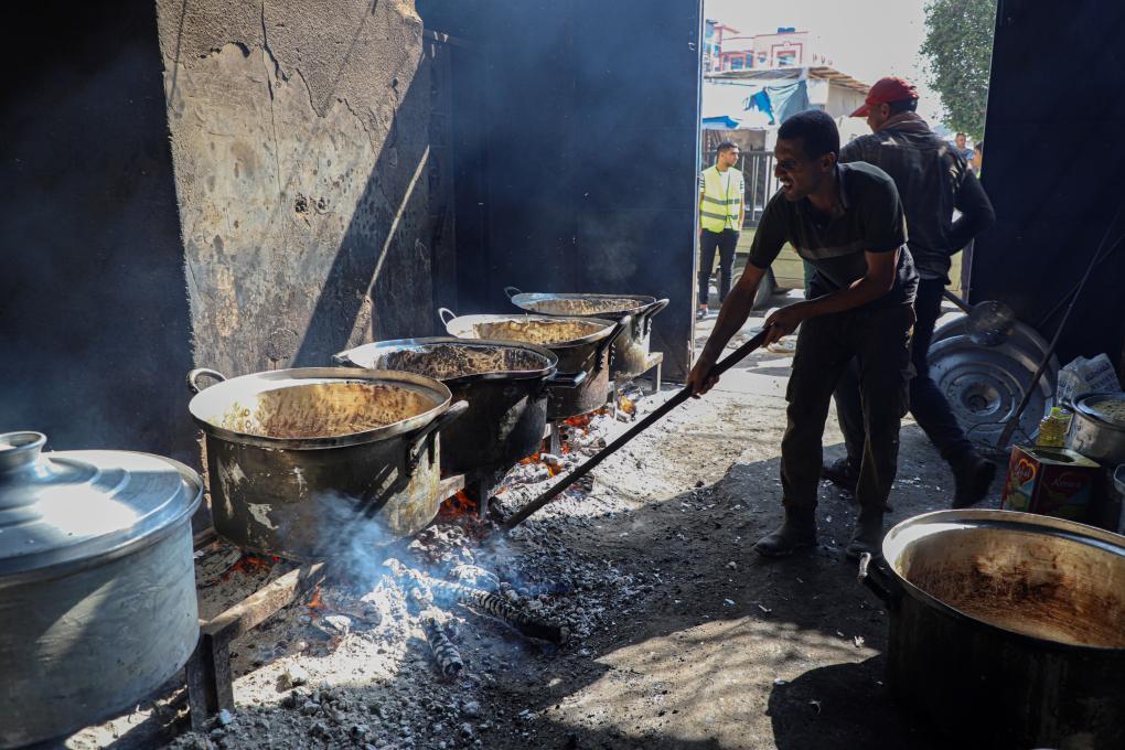 11月3日,在加沙地带南部城市拉法,人们在煤气中断后用柴火做饭。目前加沙地带燃料严重短缺。新华社发(里泽克·阿卜杜勒贾瓦德摄)