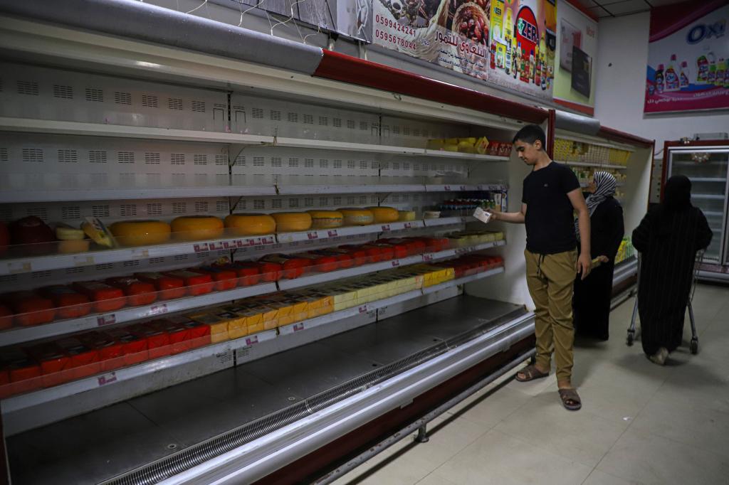 11月2日,在加沙地带南部城市汗尤尼斯,人们在商品短缺的货架前采购。新华社发(里泽克·阿卜杜勒贾瓦德摄)