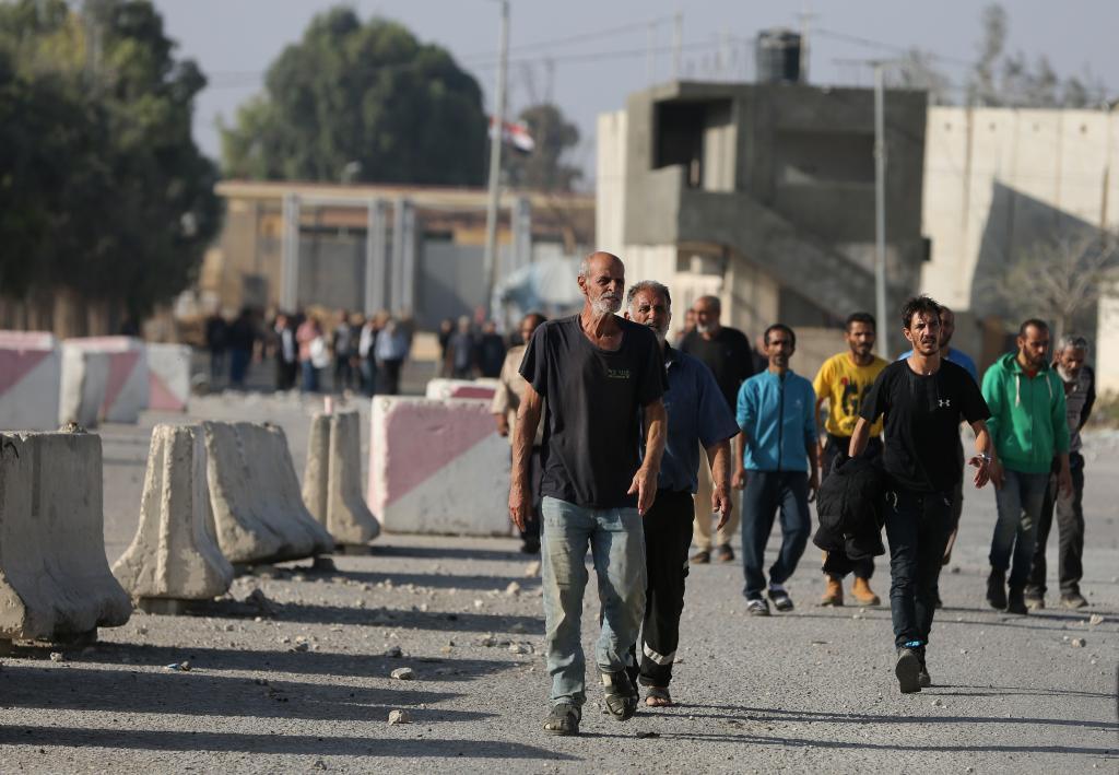 11月3日,遭以色列遣返的巴勒斯坦劳工抵达拉法口岸加沙一侧。新华社发(哈立德·奥马尔摄)