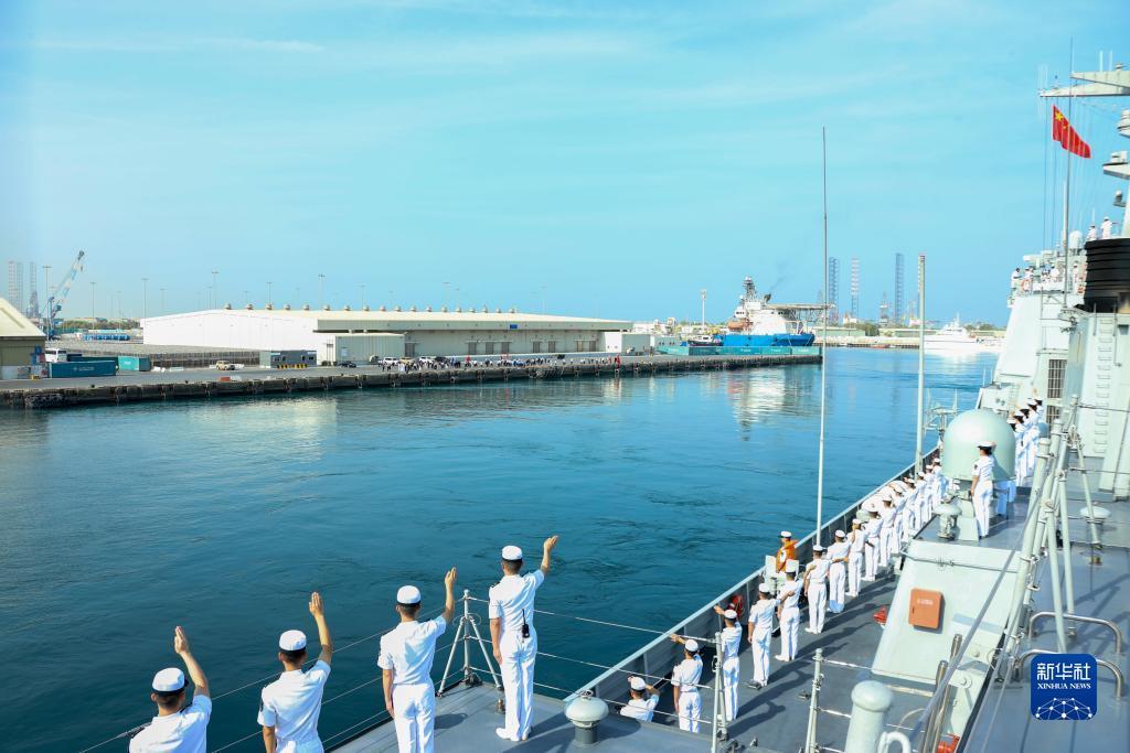 阿联酋海军副司令阿卜杜拉准将及军方代表,中国驻阿联酋大使张益明及使馆工作人员、中资机构、华侨华人和留学生代表等3日到码头欢送。