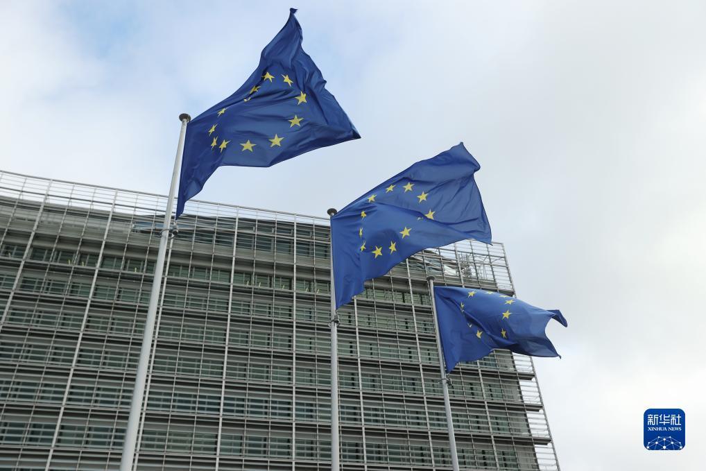11月15日,欧盟旗帜在比利时布鲁塞尔的欧盟委员会总部大厦外飘扬。新华社记者 赵丁喆 摄
