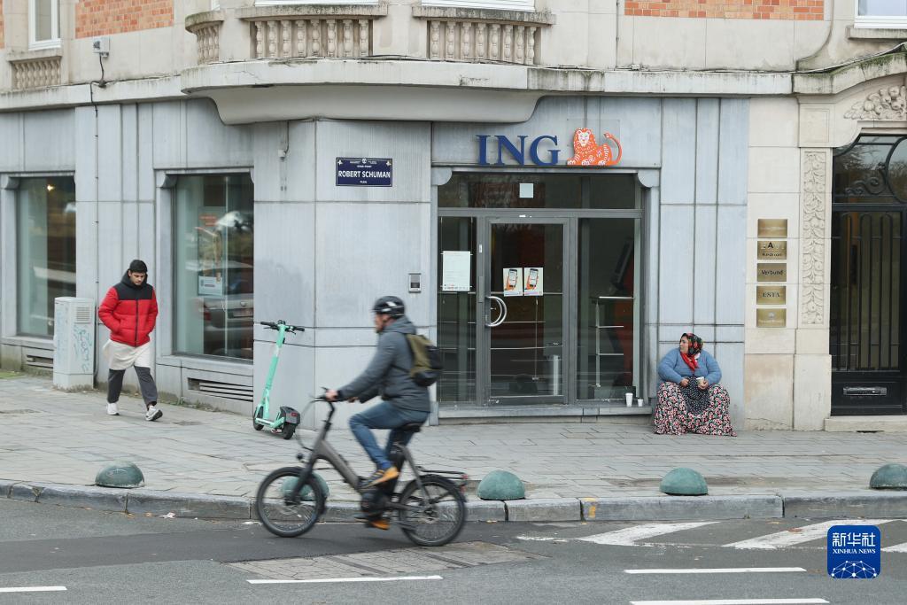 11月15日,人们从比利时布鲁塞尔一家银行网点前经过。新华社记者 赵丁喆 摄