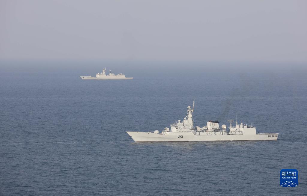 中巴“海洋卫士-3”海上联合演习在阿拉伯海北部海空域举行,双方舰艇组织编队运动(11月14日摄)。新华社发(姜霞摄)