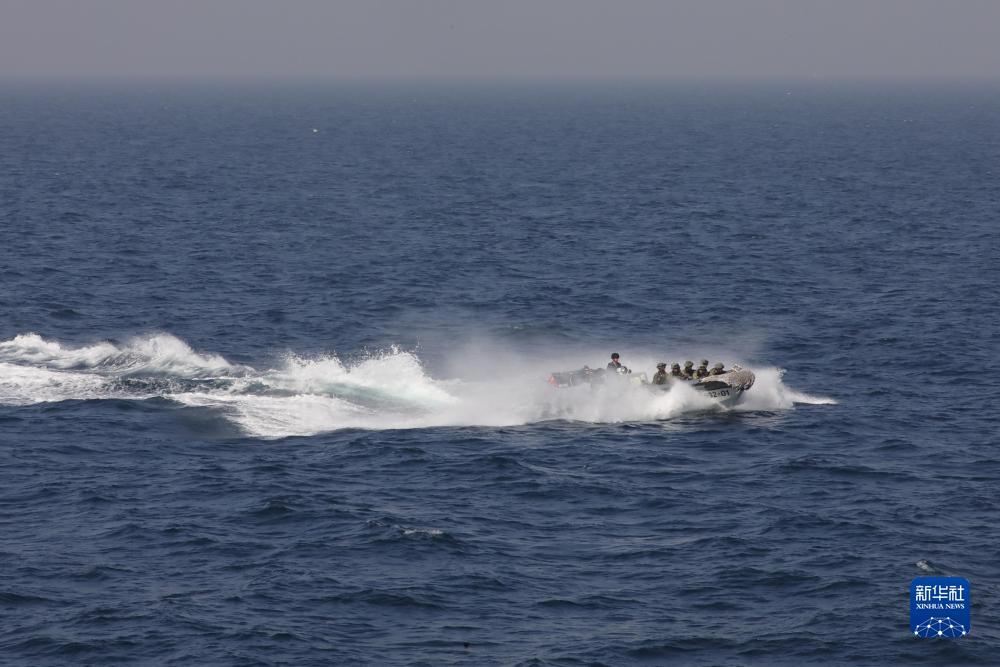 中巴“海洋卫士-3”海上联合演习在阿拉伯海北部海空域举行,中国海军荆州舰特战队员在临检拿捕演练中乘小艇前出(11月14日摄)。新华社发(姜霞摄)