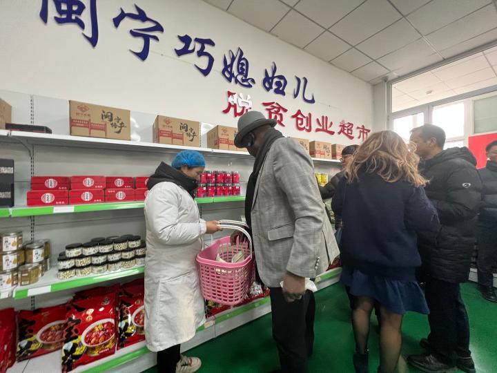 驻华使节在“闽宁巧媳妇儿脱贫创业超市”购买宁夏特色农产品(11月21日摄)。新华社记者 成欣 摄