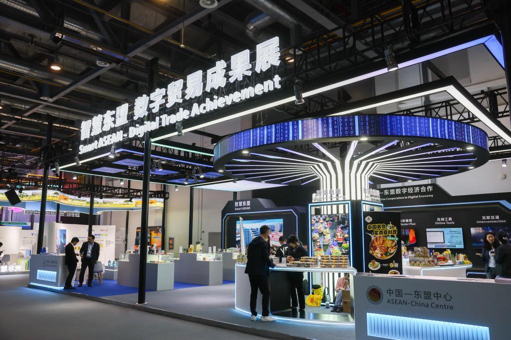 11月23日在第二届全球数字贸易博览会拍摄的智慧东盟数字贸易成果展。新华社记者徐昱摄