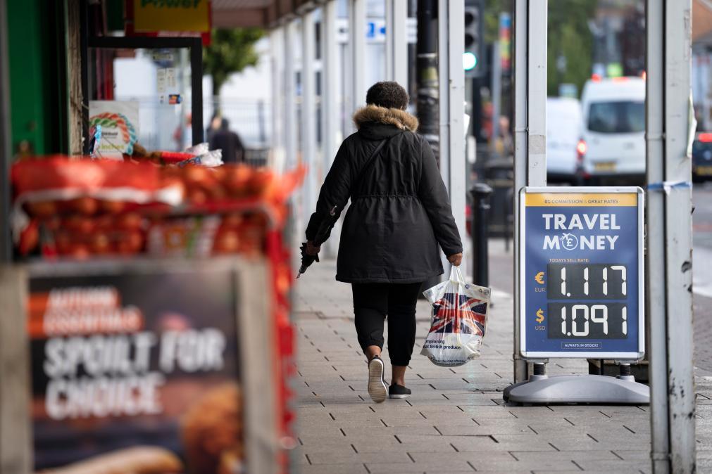 10月7日,在英国曼彻斯特,一名女子走过一处货币兑换点。新华社发(乔恩·休珀摄)