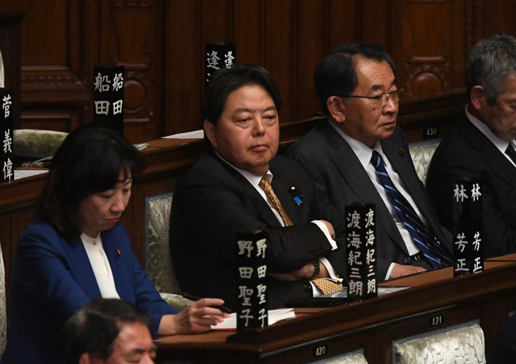 这是12月13日在日本东京的国会闭会式上拍摄的林芳正(左二)。新华社记者冯武勇摄