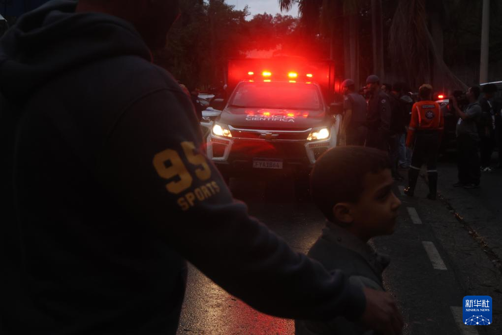 8月9日,人们聚集在巴西圣保罗州维涅杜市坠机现场附近。新华社发(拉赫尔·帕特拉索摄)