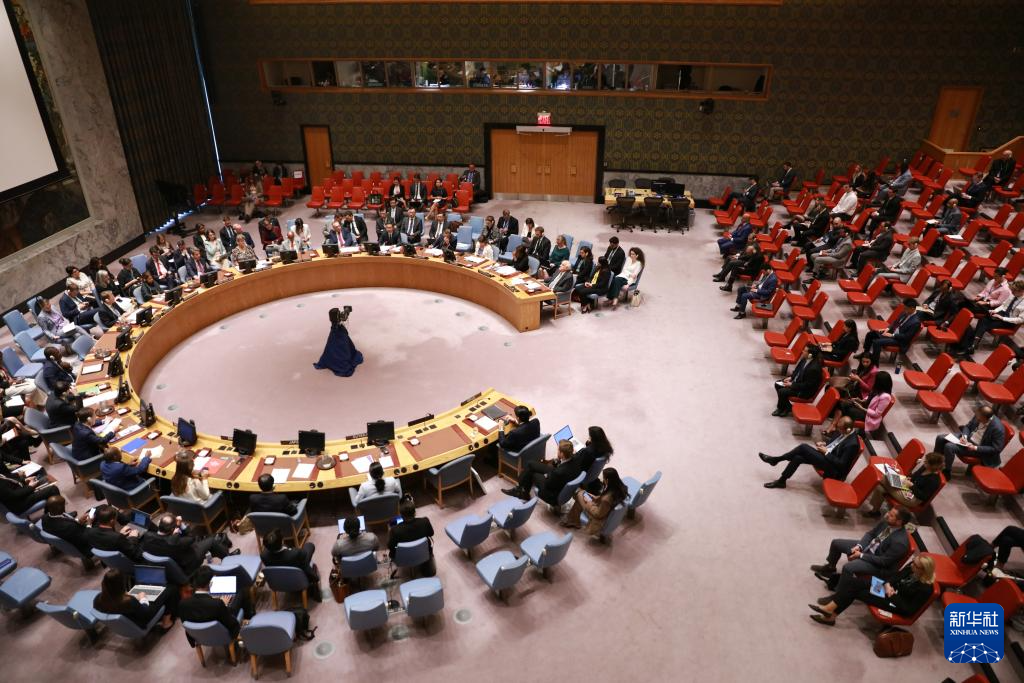 这是9月4日在位于纽约的联合国总部拍摄的安理会巴以问题紧急公开会现场。中国常驻联合国副代表耿爽4日在安理会巴以问题紧急公开会上发言,呼吁对当事方有重要影响的国家拿出真诚、负责任的态度,为平息加沙战火采取切实行动。新华社记者 谢锷 摄
