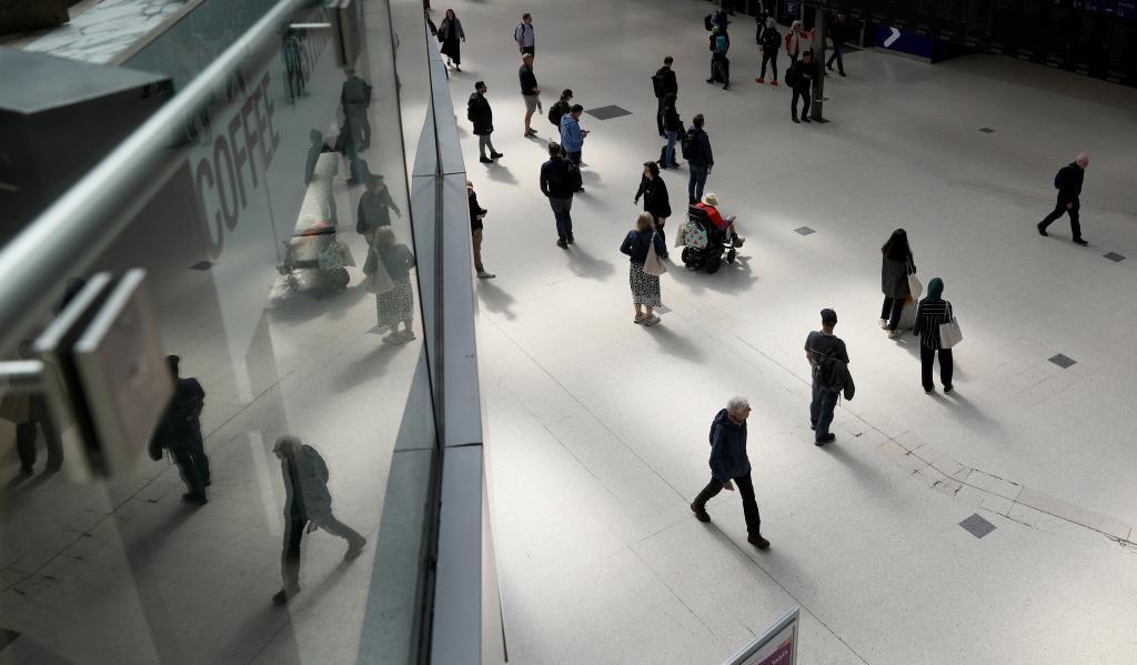 5月8日,旅客走在英国伦敦滑铁卢火车站内。新华社记者李颖摄