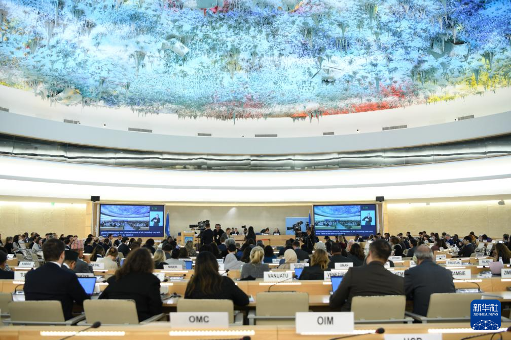 这是2月24日在瑞士日内瓦万国宫拍摄的联合国人权理事会第58届会议“《北京宣言》和《行动纲领》三十周年”高级别会议现场。新华社记者 连漪 摄