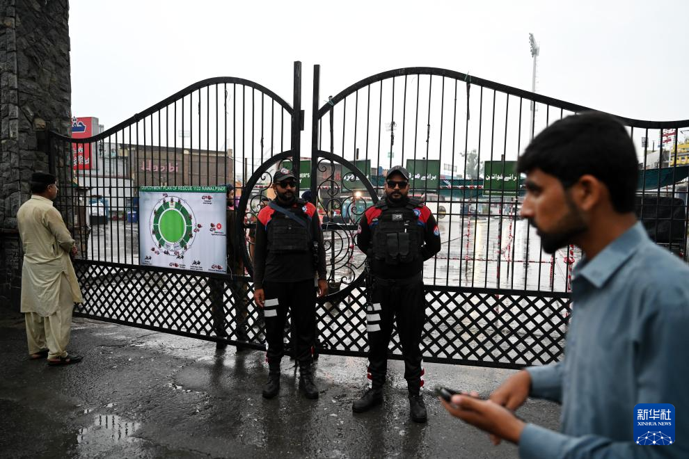 5月8日,安全人员在巴基斯坦旁遮普省拉瓦尔品第的印度无人机袭击现场附近执勤。新华社发(艾哈迈德·卡迈勒摄)