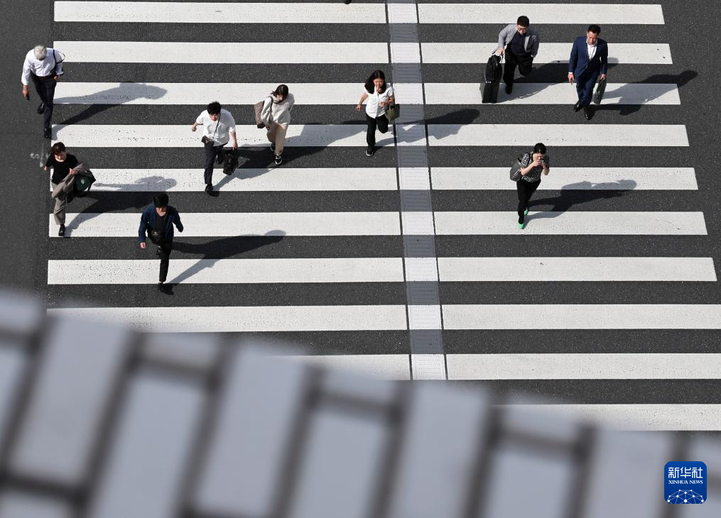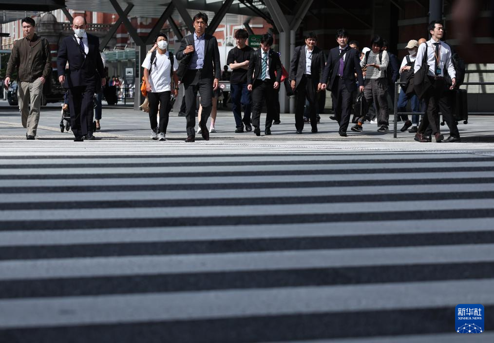 5月15日,在日本东京,行人通过东京站附近的一处人行横道。新华社记者 贾浩成 摄