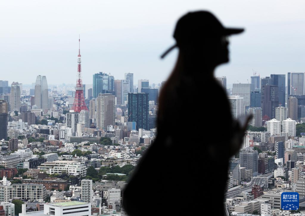5月15日,在日本东京,游客在惠比寿站附近的一座高楼内欣赏城市景观。新华社记者 贾浩成 摄