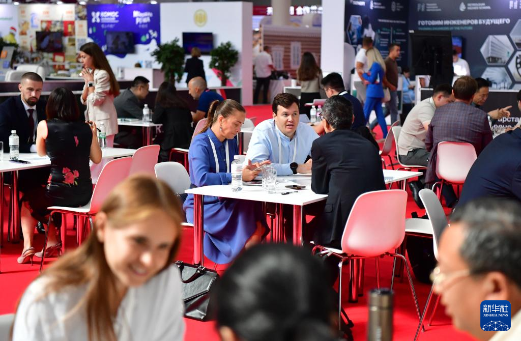 8月18日,多国企业代表在俄罗斯喀山举行的第三届俄罗斯-中国互利合作“萌芽”论坛上洽谈。新华社记者 张超群 摄