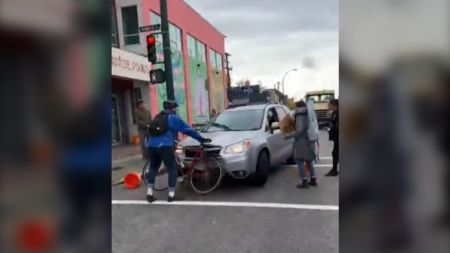 一辆小型货车周五(11月3日)早上,闯入了加拿大BC省温哥华东区一场支持巴勒斯坦示威活动的封锁线,幸好事件中没有人受伤。根据CTV新闻台报道,有一批支持巴勒斯坦的示威者,周五在温哥华东区在克拉克街(Clark Street)夹维纳布尔斯街( Venables Street)的交界举行集会,示威者当时围封相关路段,但一辆小型货车却穿越人群,并且碾压了现场一辆单车。