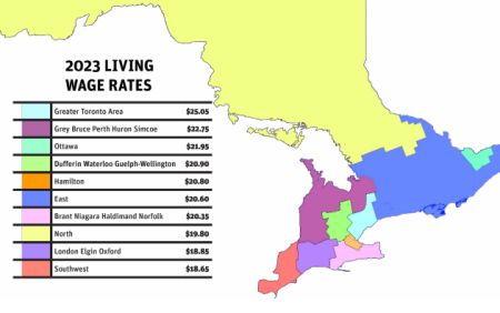 通过统计和评估,该报告发现,虽然在大多区生活需要的最低维生工资最高,但渥太华的年增长率是最大的,幅度达12%。以下是安省各地的维生工资水平,这主要是根据加拿大统计局的地理概念“经济区域”来划分: