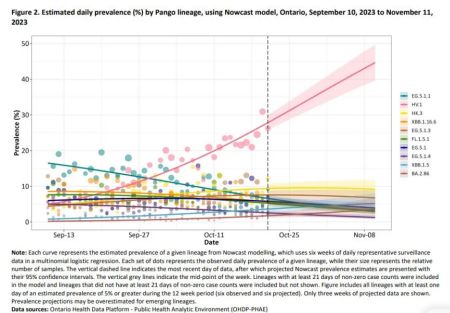 自8月以来,该亚变种从报告病例的2.1%增长到10月29日的34.4%,并且已经超过了在春季晚些时候和夏季更为主导的其他变种,如XBB 1.16(昵称为Arcturus变种)。“它已经出现了,” 传染病专家Isaac Bogoch博士表示。“如果你看安省最近的基因组研究,它是最普遍的谱系。而这是在十月底。所以现在,它肯定比那时候更多。”