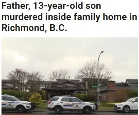 今天(12月2日),警方调查人员称加拿大BC省列治文市双重凶杀案的两名死者分别13岁男孩和46岁的父亲。凶杀案调查人员表示,周四晚上在列治文一处住宅内发现的两名死者是父子,目前收集到的证据表明他们是袭击目标。低陆平原综合凶杀案调查小组在周六的案件最新情况中没有透露死者的姓名或照片,但称两名受害者是一名 46 岁的男子和他 13 岁的儿子。