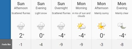 据气象网预报,在2023年的最后一天,多伦多会从下午开始有些飘雪,体感在零下1度左右。到了傍晚,气温进一步下降,体感为零下4度。夜间体感低至零下9度。新年第一天,天气以晴到多云为主,上午体感仍会在零下9度左右,下午温度略有回升,体感为零下3度。到了晚上,体感温度又会低至零下8度。