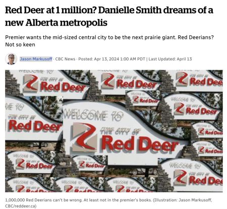 就在最近,阿尔伯塔省省长Danielle Smith演讲时,宣布了一个非常非常非常“疯狂”的宏伟愿景。她希望看到红鹿市的人口增长十倍,从现在的 106,000 人增加到一百万居民。