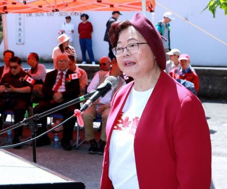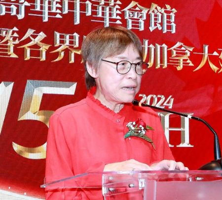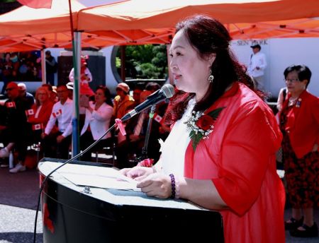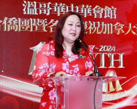 加拿大联邦枢密院终身院士黄陈小萍即席致词,祝愿加拿大国泰民安,祝愿加拿大生日快乐!也祝愿所有与会者身体健康、生活幸福!