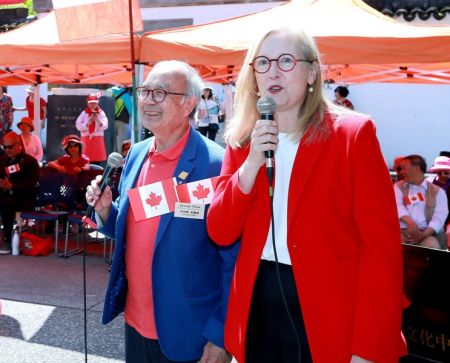 温哥华中华会馆理事长钱华致辞表示,在华埠举行加拿大日庆祝活动是中华会馆的传统项目,每年都会举办。我们是来自中国的移民,也是加拿大的公民,为加拿大庆祝生日很有意义,在这样的喜庆活动中,我们既可以感受到各族裔人民多元共融的温暖,更可以了解到华裔加拿大为创建新家园付出的努力。